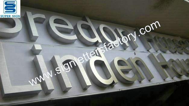 Fabricated brushed stainless steel letter sign