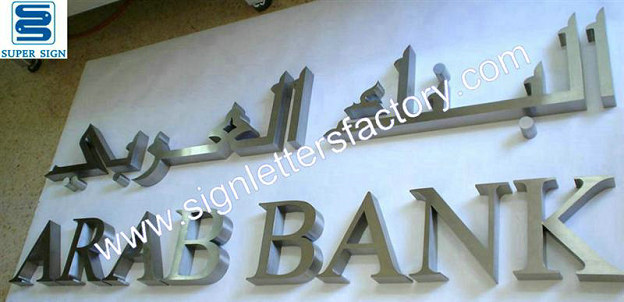 fabricated brushed stainless steel letter signage