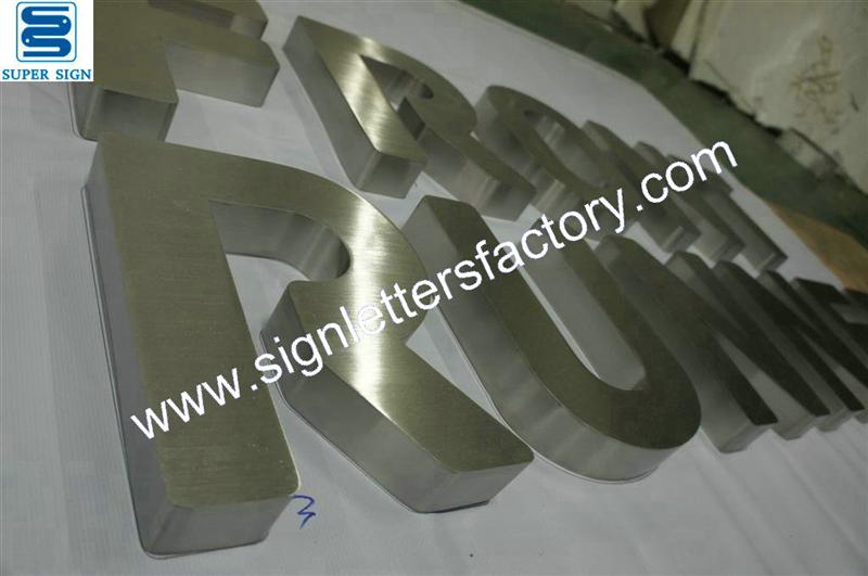 fabricated brushed stainless steel exterior sign letters